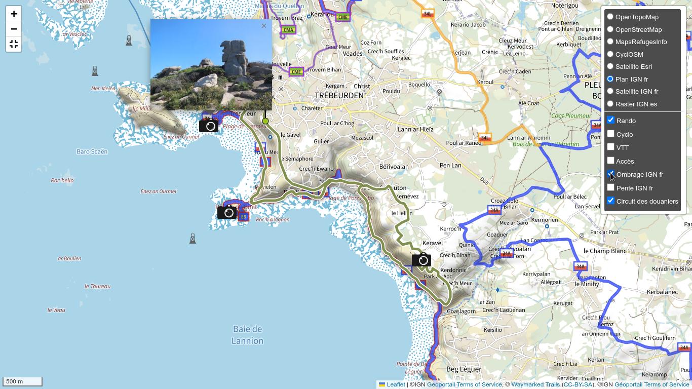 Géo Photo vous permet de présenter vos plus belles randonnées et de les partager sur votre site Internet, à l’aide des photos comportant les informations de géo localisation enregistrées par votre APN ou votre téléphone portable.